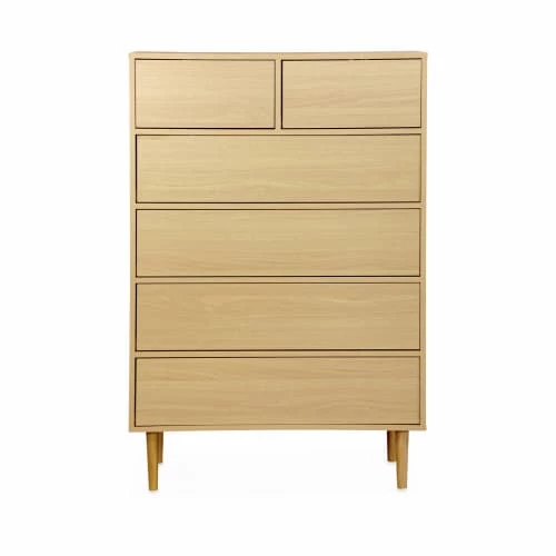 Dotée de 6 tiroirs pushPiètement bois de pinGrands espaces de rangement fonctionnels