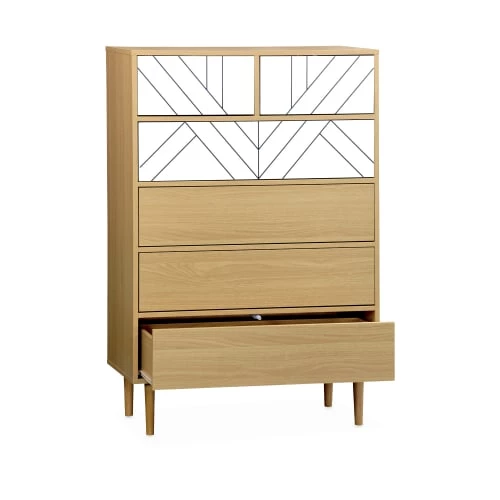 Dotée de 6 tiroirs pushPiètement bois de pinGrands espaces de rangement fonctionnels