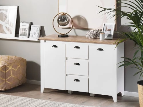 HOMN Commodes Et Cabinets Commode De Rangement 4 Tiroirs Couleur Blanc/bois, 80 Cm Longueur