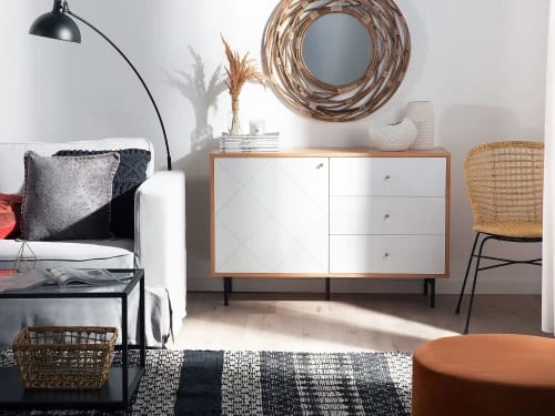 Casâme Commodes Et Cabinets Commode 3 Tiroirs Décor Chêne Et Façade En Rotin – L80 X P39 Cm