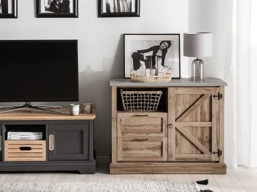 Casâme Commodes Et Cabinets Commode 2 Tiroirs 2 Portes Blanches Et Décor Bois