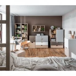 Calicosy Commodes Et Cabinets Commode 4 Tiroirs Décor Bois Et Blanc L100 Cm