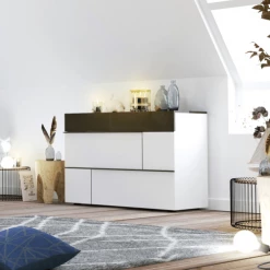 Casâme Commodes Et Cabinets Commode 2 Tiroirs 2 Portes Blanches Et Décor Bois