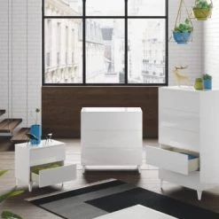 HOMN Commodes Et Cabinets Commode 3 Tiroirs Couleur Blanc Brillant, Longueur80 Cm