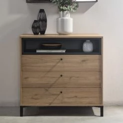 HOMN Commodes Et Cabinets Commode 3 Tiroirs Couleur Chêne, 77 Cm Largeur