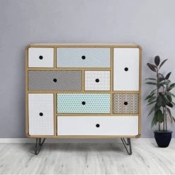 Homcom Commodes Et Cabinets Commode 5 Tiroirs Design Scandinave Graphique