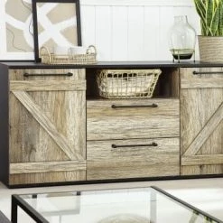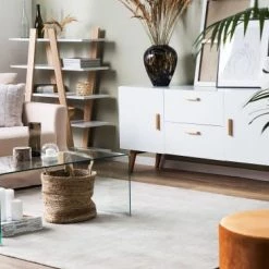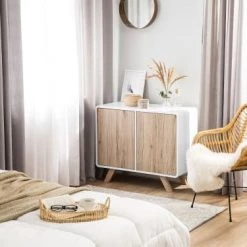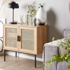 Beliani Commodes Et Cabinets Commode 2 Portes Effet Bois Clair Rotin