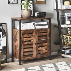 Beliani Commodes Et Cabinets Commode 2 Portes Effet Bois Foncé