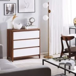 Beliani Commodes Et Cabinets Commode 3 Tiroirs Blanche Et Effet Bois Foncé