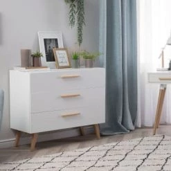 Beliani Commodes Et Cabinets Commode Blanche Effet Bois Clair 3 Tiroirs