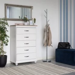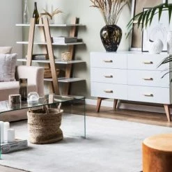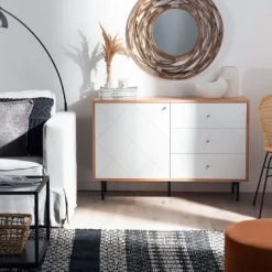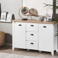 Beliani Commodes Et Cabinets Commode Blanche Et Effet Bois Clair