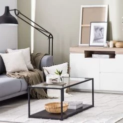 Beliani Commodes Et Cabinets Commode 2 Tiroirs Noire Et Bois Clair