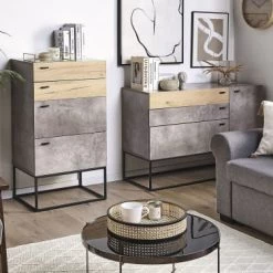 Beliani Commodes Et Cabinets Commode Effet Béton / Effet Bois Clair 4 Tiroirs