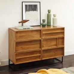 Oviala Commodes Et Cabinets Commode Double Avec 6 Tiroirs En Acacia Massif