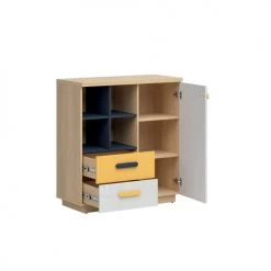 Brw Commodes Et Cabinets Commode 1 Porte 2 Tiroirs Naturel Blanc Et Jaune
