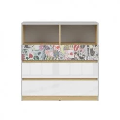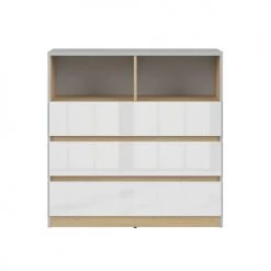 Brw Commodes Et Cabinets Commode 3 Tiroirs 2 Niches Gris Blanc Et Sticker