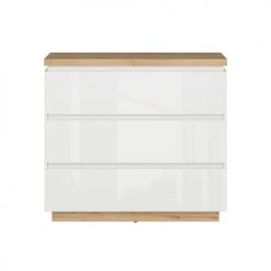 Brw Commodes Et Cabinets Commode 3 Tiroirs Avec Led Blanc Laqué Et Naturel