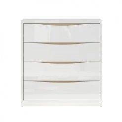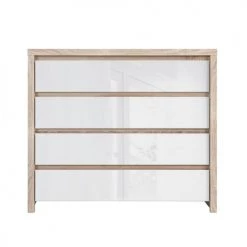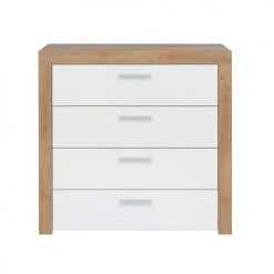 Brw Commodes Et Cabinets Commode 4 Tiroirs Blanc Laqué Et Naturel