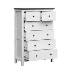 Brw Commodes Et Cabinets Commode 6 Tiroirs Blanc Et Naturel Foncé