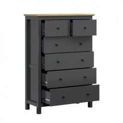Brw Commodes Et Cabinets Commode 6 Tiroirs Gris Anthracite Et Naturel