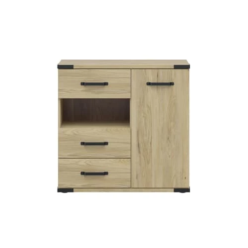 Brw Commodes Et Cabinets Commode 3 Tiroirs 1 Porte Naturel Et Noir
