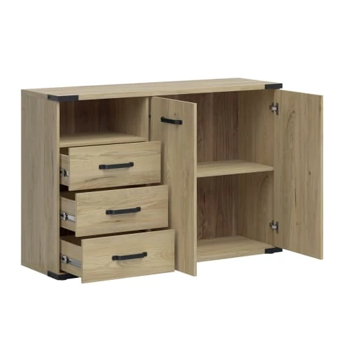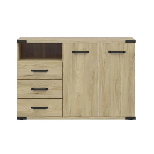 Brw Commodes Et Cabinets Commode 3 Tiroirs 2 Portes Naturel Et Noir