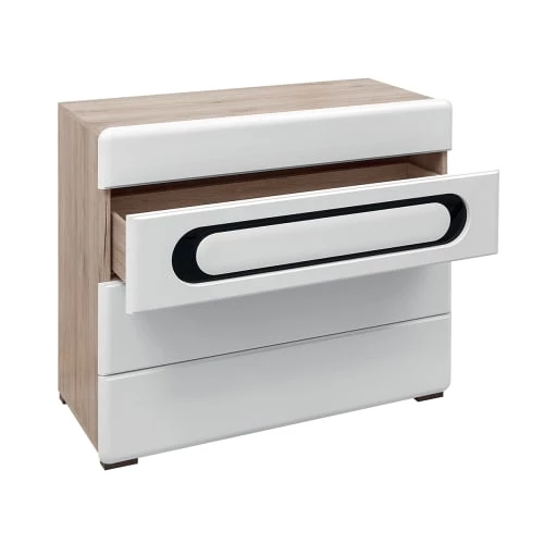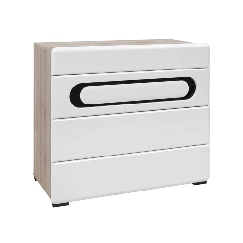 Brw Commodes Et Cabinets Commode 4 Tiroirs Blanc Et Noir Laqué