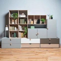 Calicosy Commodes Et Cabinets Buffet Bas 2 Portes 3 Tiroirs L160 Cm – Gris