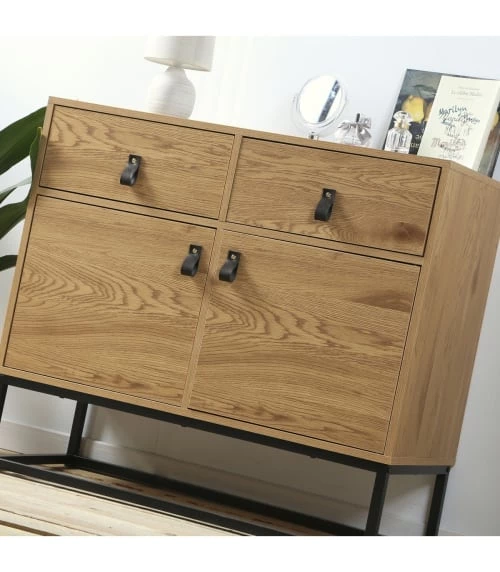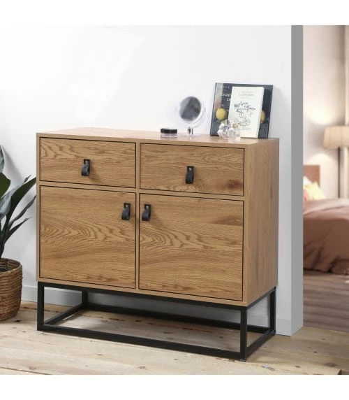 Casâme Commodes Et Cabinets Commode 3 Tiroirs Décor Chêne Et Noir