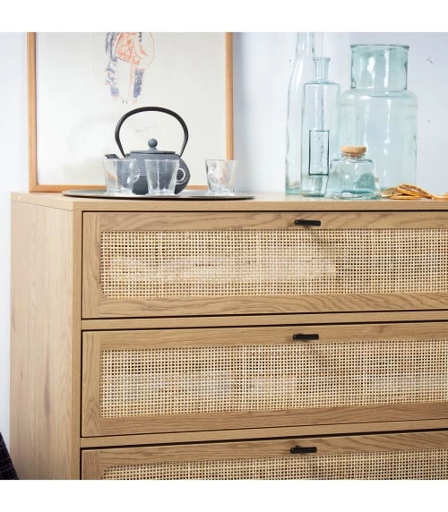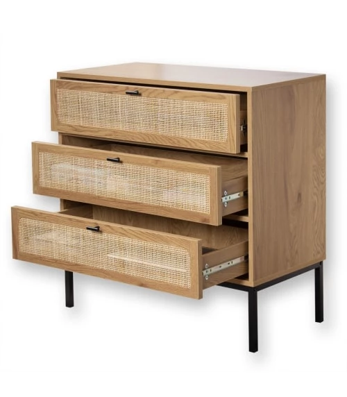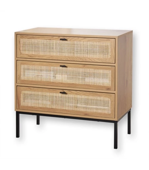 Casâme Commodes Et Cabinets Commode 3 Tiroirs Décor Chêne Et Piétement Métal Noir