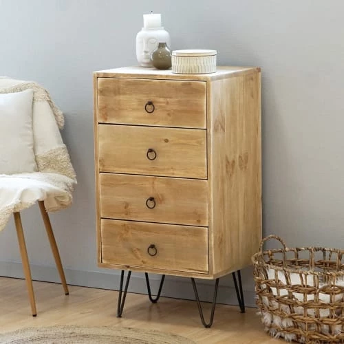 Le chiffonnier ISABEAU estlivré semi-monté, il n’y a plus qu’à visser les pieds en métal.Une fois livré, il ne vous reste plus qu’à l’installer dans la pièce de votre choix. Il a été fabriqué avec soin par nos artisans avecun bois massif issu de forêts certifiéespour une consommation responsable. Les finitions sont toutes réalisées à la main, sans solvants pour le respect de l’environnement. Les imperfections apparentes du bois font de chaque produit une pièce authentique.