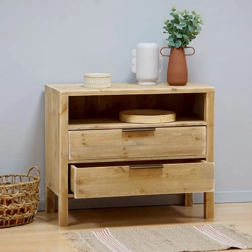 Votre commode OLYMPE estlivrée montée pour vous faciliter sa mise en place. Il ne vous reste plus qu’à la disposer dans la pièce de votre choix. Elle a été fabriquée avec soin par nos artisans avec unbois massif géré durablement. Les finitions sont réalisées à la main, sans solvants pour le respect de l’environnement. Les imperfections apparentes du bois font de chaque meuble une pièce unique.