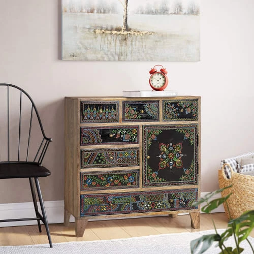 GINER Y COLOMER Commodes Et Cabinets Commode En Bois De Manguier Naturel Et Multicolore