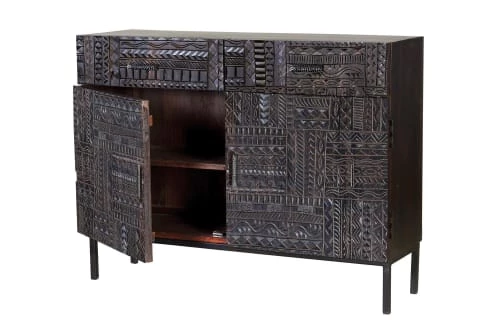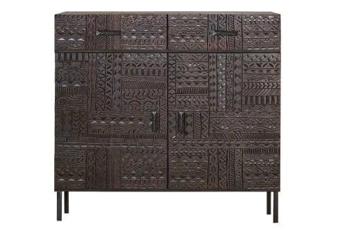 Maisons Du Monde Commodes Et Cabinets Commode 3 Tiroirs En Manguier Noir Sculpté Motifs Feuilles