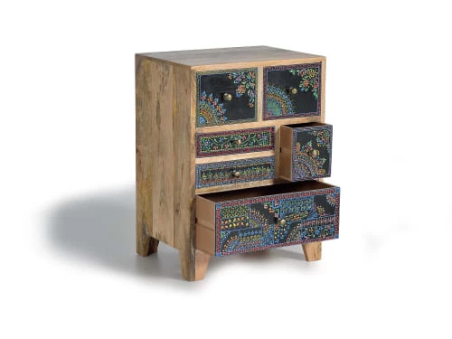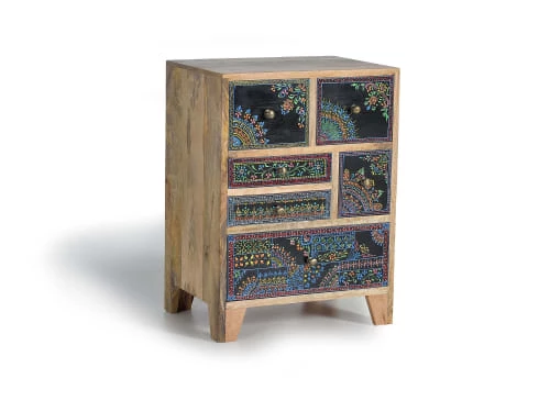 GINER Y COLOMER Commodes Et Cabinets Meuble D’appoint En Bois De Manguier Decorée à La Main