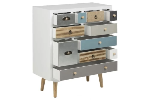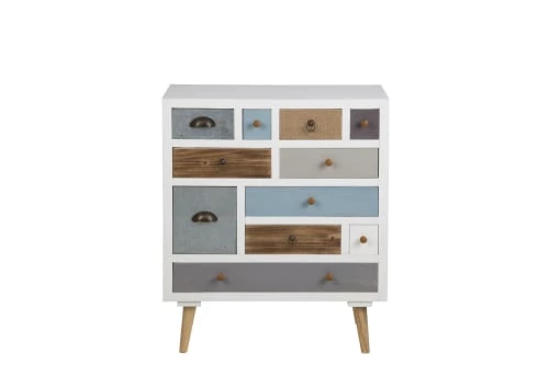 HOMN Commodes Et Cabinets Commode De Rangement 4 Tiroirs Couleur Blanc/bois, 80 Cm Longueur