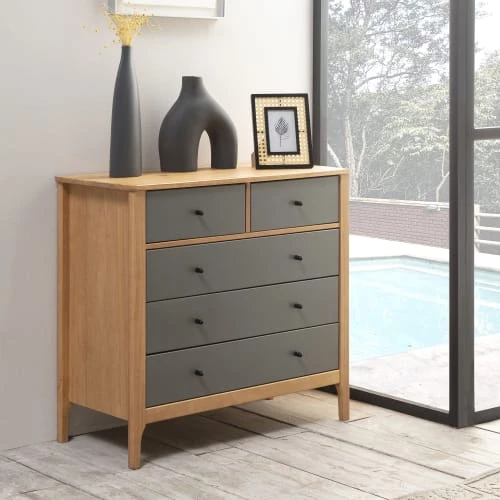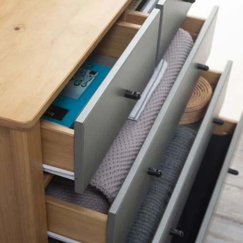 · 5 tiroirs blancs ou gris avec guides métalliques pour une extraction facile.