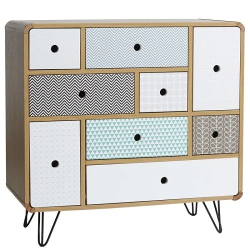 · L’avant du tiroir en multicolore.