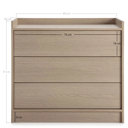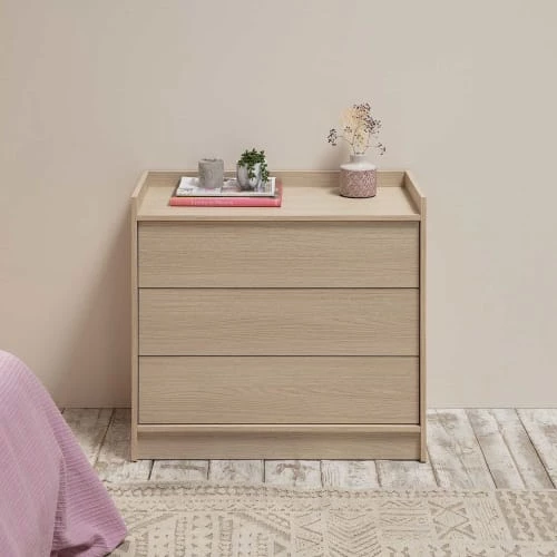 ·3 tiroirs finition chêne, blanc ou gris avec glissières métalliques pour une meilleure ouverture.