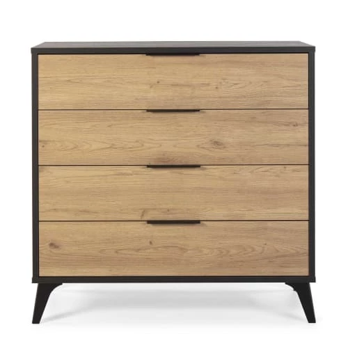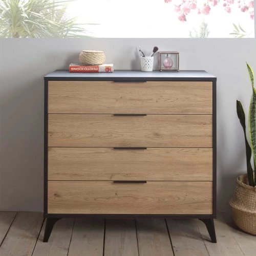 Structure principale en couleur Noir/ Façade du tiroir en couleur Bois avec une poignée très fine et élégante en aliminium en couleur noir mat.