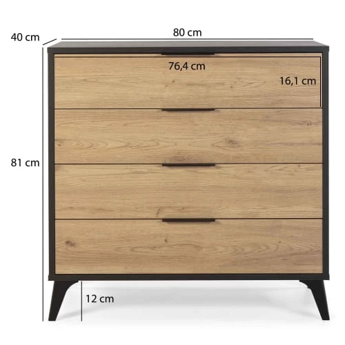 4 tiroirs avec guides métalliques pour une facile extraction pour profiter au maximum l’espace de rangement. Dimension du tiroir: 76,2 cm ( longueur) 35 cm (profondeur) 16,2 ( hauteur)