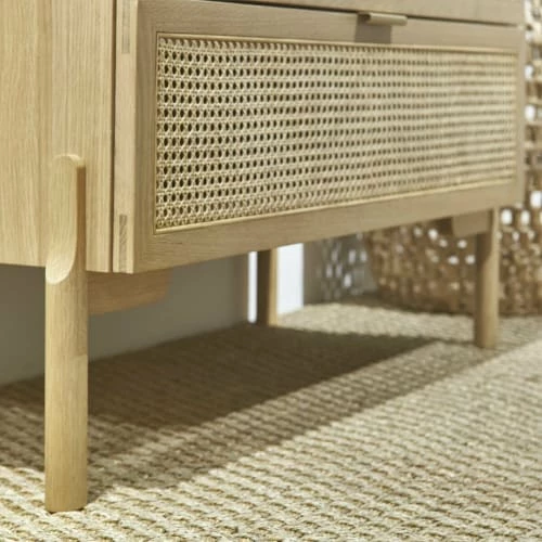 Casâme Commodes Et Cabinets Commode 3 Tiroirs Décor Chêne Et Façade En Rotin – L80 X P39 Cm