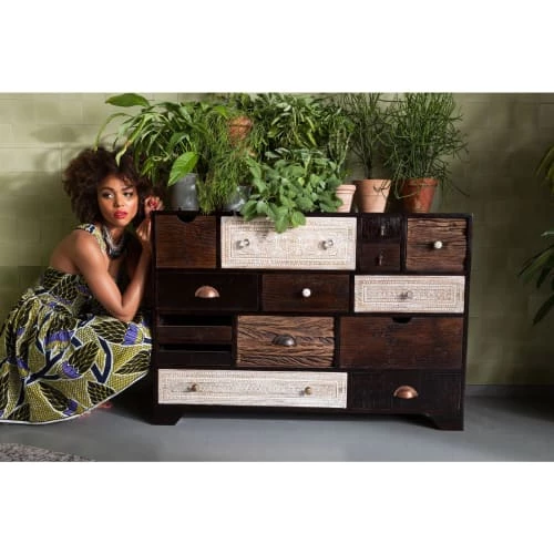 Casâme Commodes Et Cabinets Commode 2 Tiroirs 2 Portes Blanches Et Décor Bois