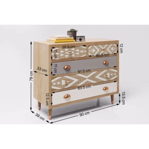 HOMN Commodes Et Cabinets Commode 3 Tiroirs Couleur Chêne, 77 Cm Largeur