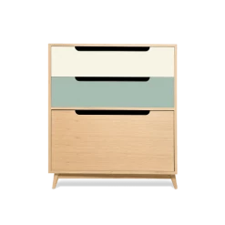 La commode MOKA dispose de 3 tiroirs à fermeture lente et leur ouverture est poncée en oblique à la main. Le design est sobre et élégant pour s’adapter à tous les styles de déco.