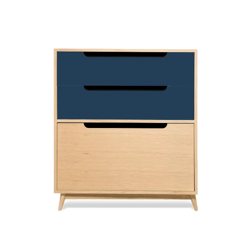 Kulile Commodes Et Cabinets Commode Peu Profonde En Chene Naturel Bleu Nuit