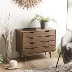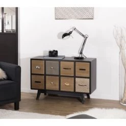 MACABANE Commodes Et Cabinets Commode Noire 8 Tiroirs Motifs Pin Marron