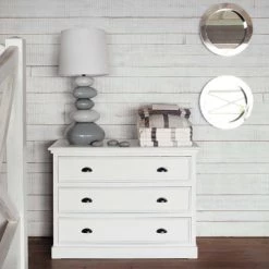 Tiroirs : paulownia et contreplaqué, finition peinture nitrocellulosique, coloris blanc