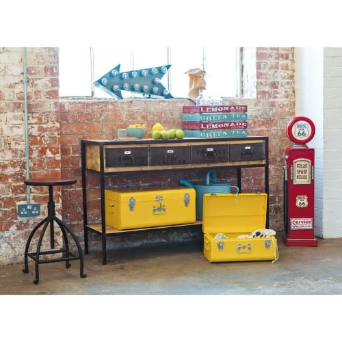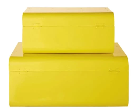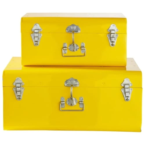 Réveillez votre déco avec l’ensemble de deux malles jaunes.