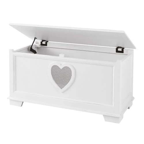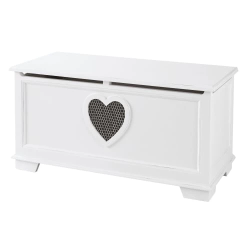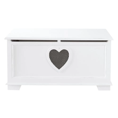 Pour tout ranger, optez pour le raffinement du coffre en pin blanc VALENTINE. Qu’il soit utilisé comme un coffre de rangement pour une chambre adulte romantique ou comme coffre à jouets, il vous séduira par sa douce couleur blanche patinée. Cet élégant coffre blanc donnera une touche féminine et naturelle à votre intérieur.